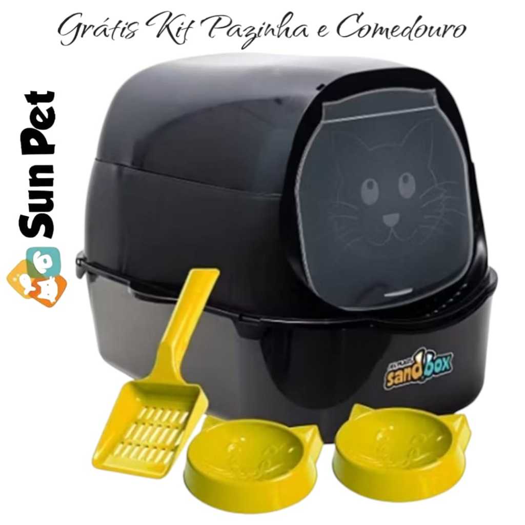 Caixa de Areia Pet Banheiro De Gato Fechada Grande Pet Kit Jel Plast Comedouro e Pazinha