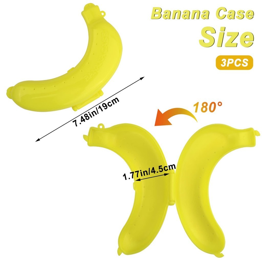 🍌Proteção confiável】-- O estojo de banana é feito de material engrossado, que é mais resistente e durável e oferece 100% de proteção para as bananas ou outras frutas que você carrega durante a viagem, acampamento ou em viagens de negócios, Dê-lhe paz de espírito. 🍓Material de alta qualidade】-- Nosso suporte de banana é feito de material pp de alta qualidade, sem BPA, ecologicamente correto e inodoro, tornando-o mais saudável e seguro para você e crianças usarem. Protetor de Banana com superfície lisa e cantos arredondados, não é fácil de usar, fácil de limpar. 🍒O Design pensativo】-- A caixa de bananas é projetada com 2 fileiras de furos de ventilação em ambos os lados, o que ajuda a manter a fruta dentro da caixa fresca e evitar que a fruta apodreça rapidamente. A embalagem contém rosa, amarelo e verde, três cores diferentes de caixas de frutas de armazenamento, o que facilita a identificação de diferentes frutas de acordo com a cor da lancheira quando você sai. 🍇 À Prova de escova e portátil】-- O tamanho do recipiente de almoço de banana: 7,48x4x1,57in/19x10x4cm, o tamanho perfeito para armazenar bananas reais ou outros tipos de frutas, e pode ser colocado em sua bolsa, bolsa de ombro, bolsa de viagem em Não precisa se preocupar com outros itens na bolsa. 🍬 Multipurpose】-- O lindo suporte de banana para lancheiras não só pode armazenar bananas, mas também pode ser usado para guardar outras frutas, como: cerejas, datas, mirtilos, uvas, também adequado para armazenar doces, nozes, Mini lanches. Também pode ser usado como decorações em eventos de feriado e assim por diante.