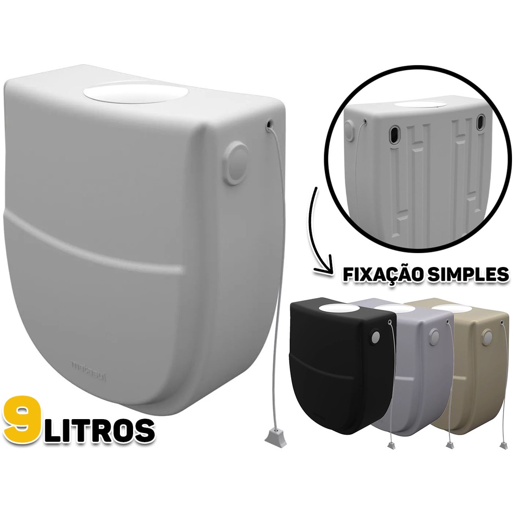 Caixa De Descarga Parede Plástica P/ Vaso Sanitário 9 Litros Metasul Branca Preto Bege Cinza Escuro Original