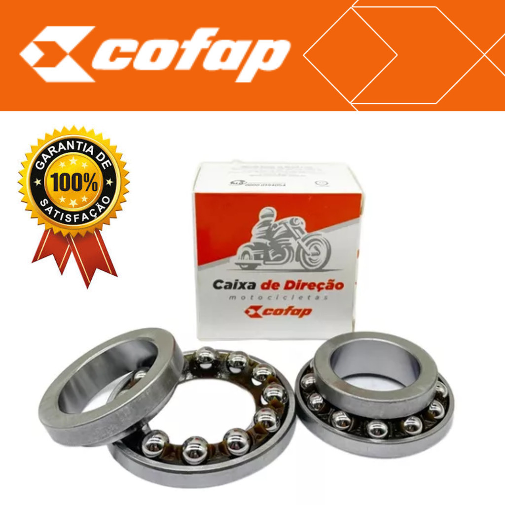 Descrição: Kit de Caixa de Direção Titan 125/150/160 - ORIGINAL COFAP 36 esferas 2 pista de esferas 1 cone superior 1 cone inferior EMBALAGEM COM 10 UNIDADES Nome de confiança com qualidade, durabilidade e resistências comprovada nos mesmos padrões do original Aplicação em motos: Titan 150 ( 2004 até 2014) Titan 125 2000 / Fan 125 2008 Titan 160 TODAS Recomendamos sempre buscar um profissional de sua confiança para instalação do produto.