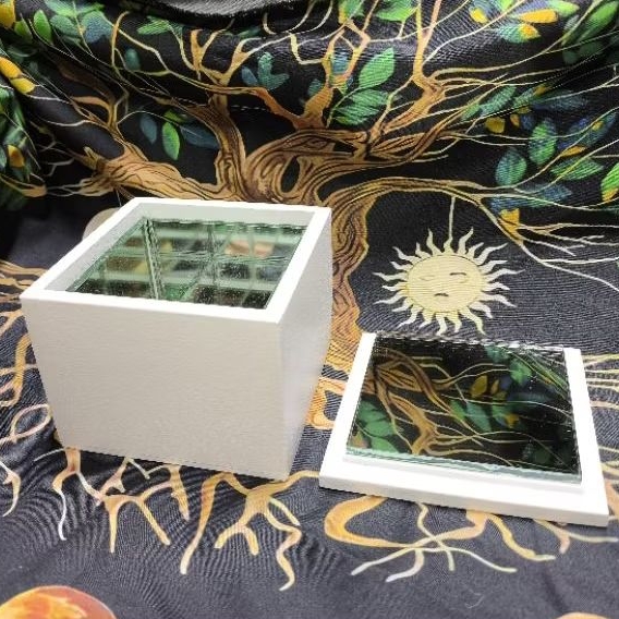 Caixa de espelho Branca de Proteção e Banimento Magia Wicca