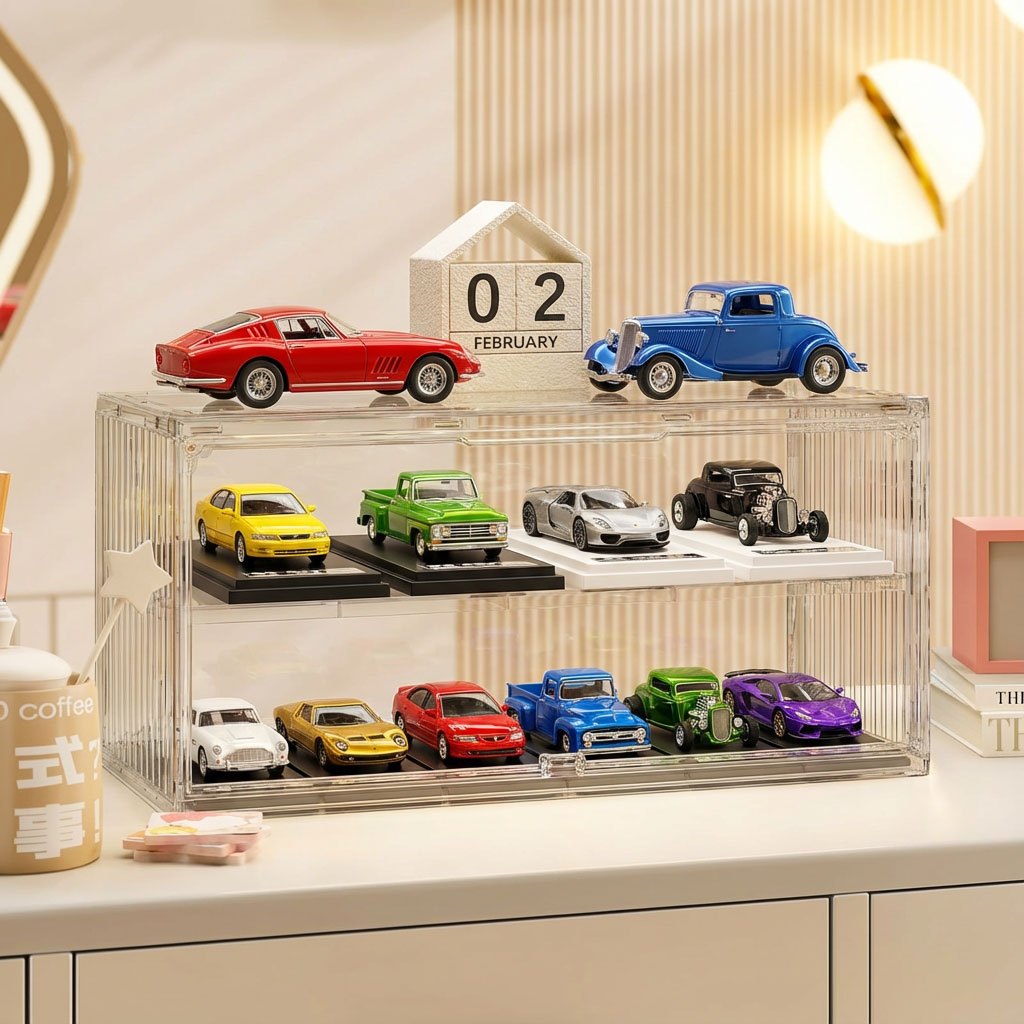 Caixa de Exibição Acrílica para Miniaturas de Carros e Bonecos Marvel Colecionáveis com Tampa Transparente