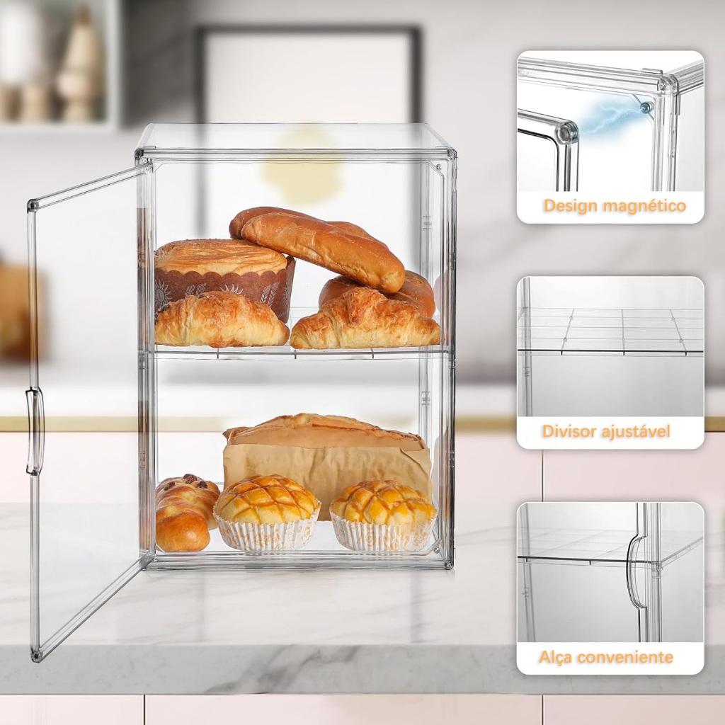 Caixa de Exibição Acrílica para Torradas com Suporte Ajustável Tampa Magnética e Proteção