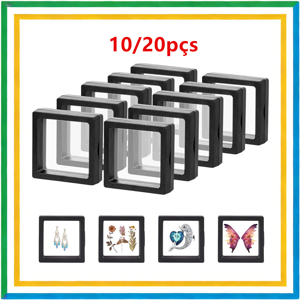 Caixa de exibição flutuante transparente 10/20, caixa de joias de filme plástico