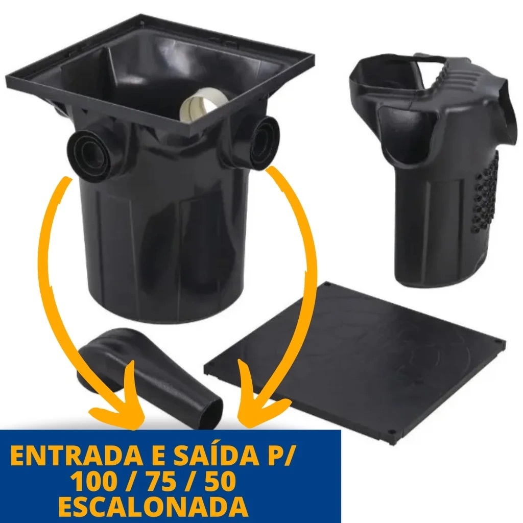 Caixa Coletora De Gordura Premium Grande Metasul Com Cesto A Caixa Coletora de Gordura Premium Grande Metasul, é um recipiente para coletar e reter resíduos gordurosos proveniente de cozinhas, áreas de serviço, lavanderias etc. Ela retém a gordura evitando o entupimento ou contaminação e direciona todo líquido livre de gordura e sólidos para o sistema de esgoto principal. Corpo, tampa e cesto fabricados em PP ( Polipropileno) A tampa suporta até 150kg, com proteção anti-UV, impede a entrada de insetos, quadrada facilitando o encaixe com o piso. Vantagens: > Cesto coletor fácil de limpar, superficie interna lisa que evita inscrustações. > Resistente, funcional e fácil de instalar. > Sistema de fechamento que elimina a proliferação de insetos. > Possibilita 63 combinações e atende até 3 pias. > Paredes internas lisas que facilitam a limpeza da caixa. > Segue as Normas NBR8160 e 5688. Especificações: > Marca: Metasul > Modelo: Premium > Cor: Preto > Retenção de Líquidos: 20 Litros > Capacidade Total: 41,2 Litros > Dimensões: 45x43x48cm > Diâmentro de Entrada: DN 50 - DN 75 - DN 100mm > Diâmetro de Saída: DN 100mm > Colocação: Externo > Peso: 2.850 kg Aplicação: > Permite a inspeção, limpeza, desobstrução, junção e mudanças de direção das tubulações externas do esgoto proveniente da edificação. Utilizada em redes enterradas de drenagem até DN 100mm. Acompanha o produto: - 1 Caixa Coletora de Gordura Premium - 1 Cesto para Limpeza