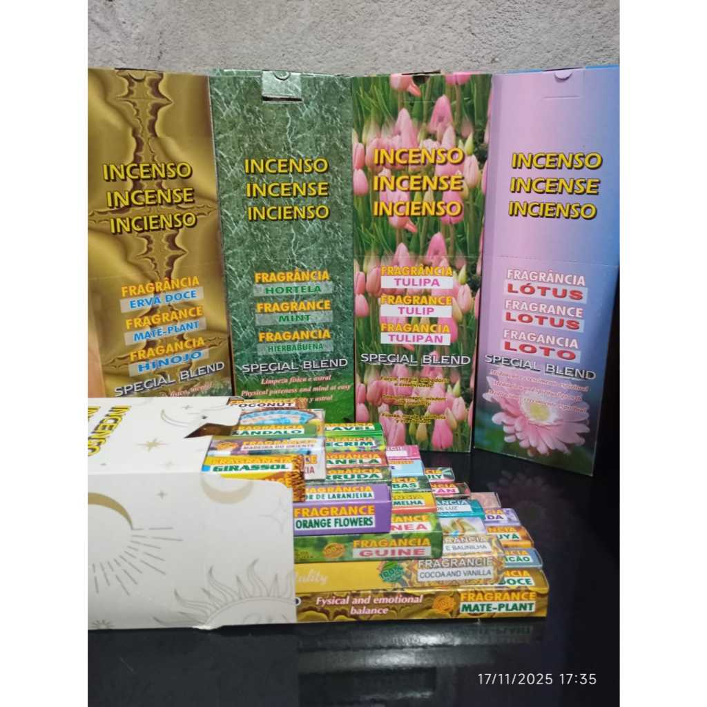 | Caixa de Incensos Sortidos Hindus 25 Unidades este produto | R$ 29,49 | 49% | 4.9/5 | 41 |