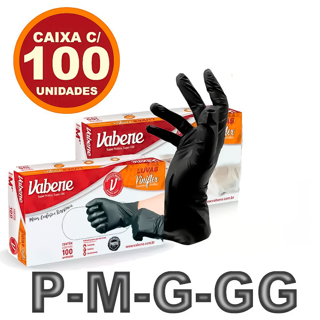 Caixa De Luva Preta Culinário Churrascaria Cozinha Padaria Viniflex De Vinil Kit Com 100 Unidades
