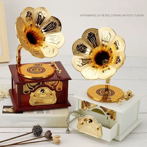 Caixa De Música De Gaveta De Gramofone Vintage, Decoração De Casa, Caixa De Joias, Caixa De Música De Carrossel De Mão