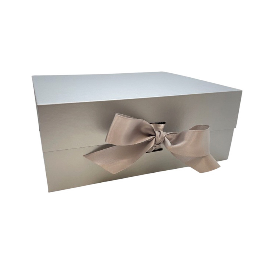 Caixa de Papel Rígido Quadrada Prata com Imã e Fita - 1 unidade - Rizzo