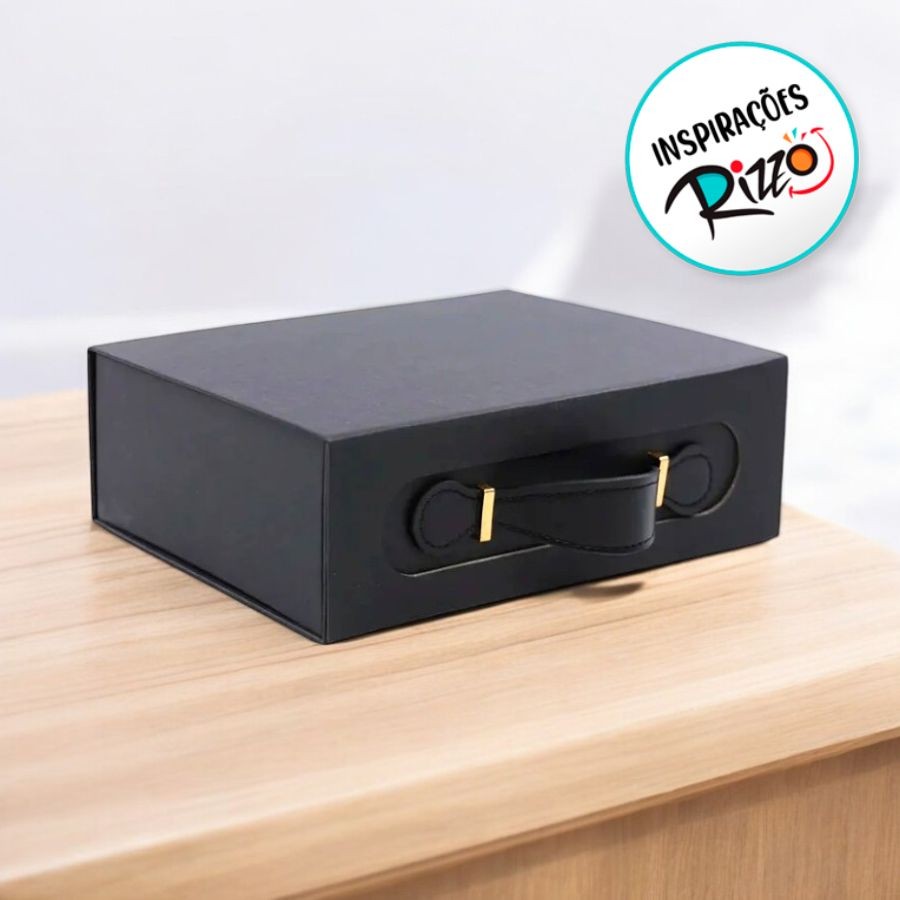 Caixa de Papel Rígido Retangular Preta com Alça - 1 unidade - Cromus