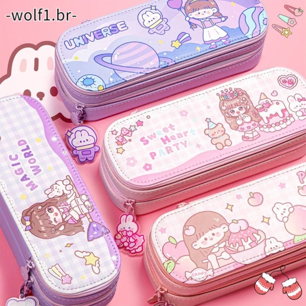 Caixa de papelaria estudantil de camada dupla, leve, à prova d'água, grande capacidade, Material: Com o material PU impermeável resistente ao desgaste e zíper liso, que torna esse estojo de lápis mais flexível, duro, resistente a arranhões e resistente à sujeira, fácil de limpar Cor: como a imagem mostra Peso do pacote: aprox.210g Opções de estilo estilo: Os estilos estão disponíveis como mostrado na imagem. Tamanho do aprox.7,8x6,2x21,8cm
