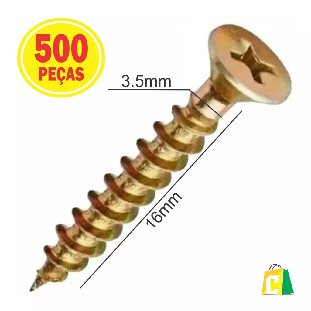 | Caixa de Parafuso Chipboard 3.5x16 500un Phillips Para Madeira MDF ... este produto | R$ 26,04 | 27% | 4.8/5 | — |
