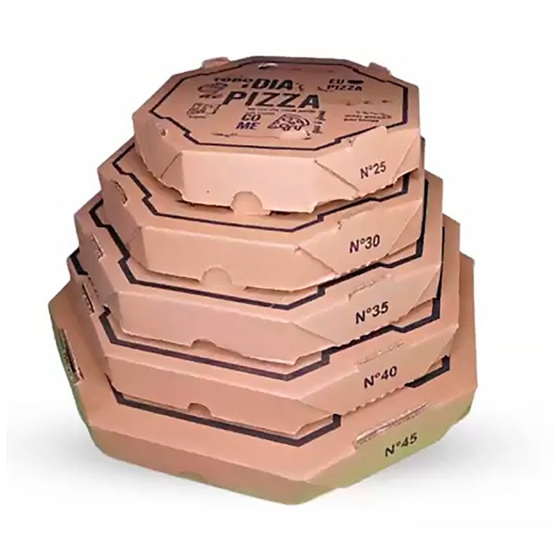 Caixa de Pizza Oitavada Montável - Tamanhos 20, 25, 30, 35, 40, 45cm - Kit com 25 Unidades