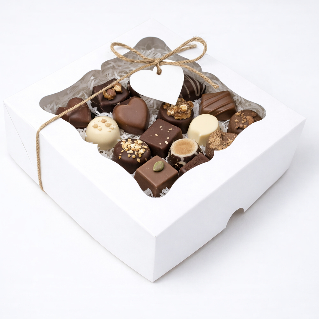 Caixa de Presente Branca/Kraft Clássica 15x15x4 Com Visor 20 Unidades