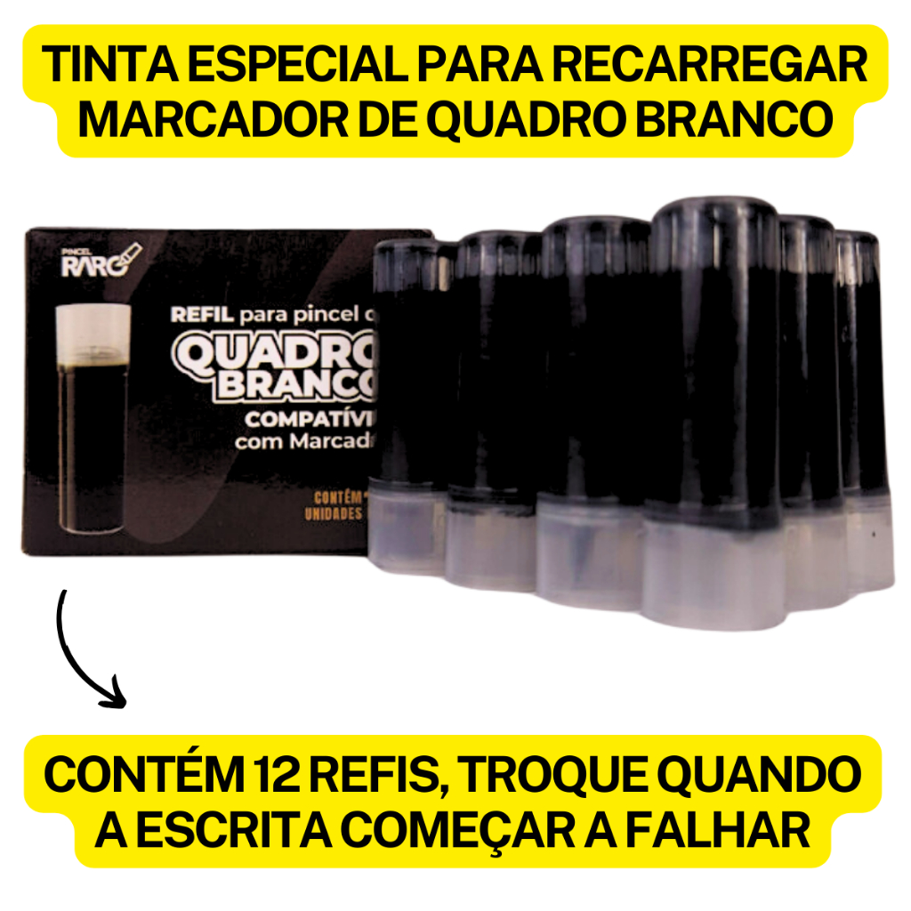 Seja Bem-vindo a Loja da Pincel Raro !! Lugar certo e seguro para comprar o seu REFIL PARA MARCADOR DE QUADRO BRANCO - CX. 12 UNID Realizando a compra conosco enviaremos o seu produto em até 24h, após a confirmação do pagamento. PRODUTO ENVIADO COM NOTA FISCAL. Compras realizadas com boleto bancário tem um prazo de até dois dias úteis para liberação do pagamento. Todos os dias nos desafiamos para levar aos nossos clientes o melhor atendimento visando sempre que sua compra seja uma experiência prazerosa. Enviaremos seu produto com rapidez e cuidado. Em caso de dúvidas, use o campo de perguntas, temos uma equipe pronta à disposição. ************************************* SOBRE O PRODUTO *************************************** ---->REFIL PARA MARCADOR DE QUADRO BRANCO - CX. 12 UNID