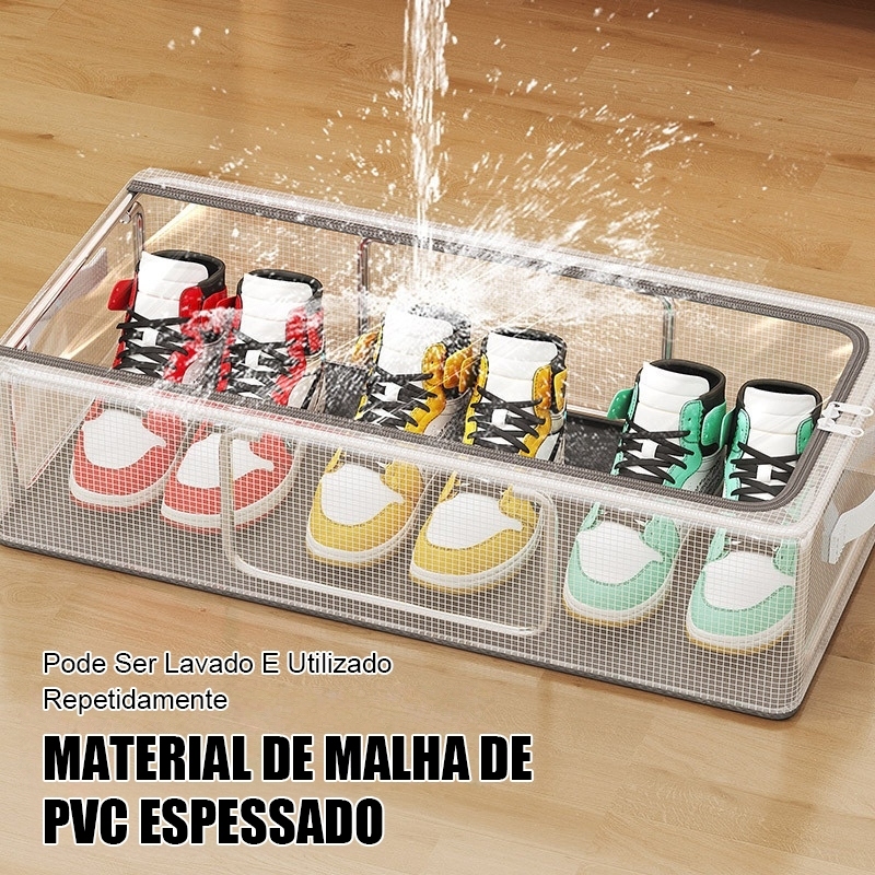Caixa de sapatos dobrável com zíper, sapateira transparente, empilhável