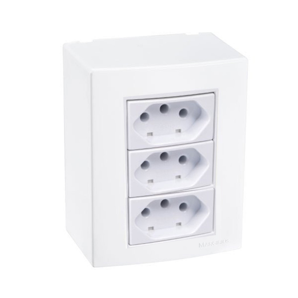 Caixa de Sobrepor Completa com 3 Tomadas 10A Bivolt – Linha Sleek Alto Brilho