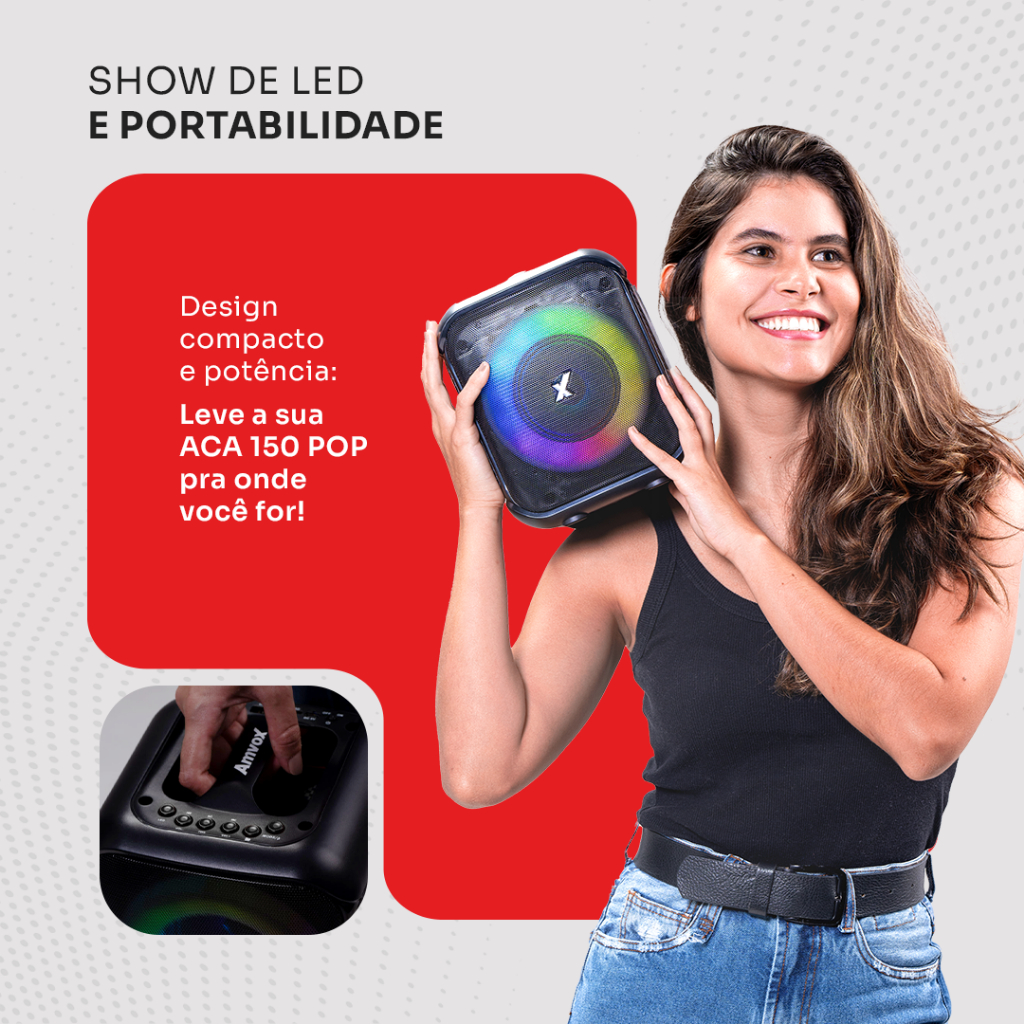 Caixa de som Amplificada 150W Amvox ACA 150 POP com FM TWS USB MicroSD Bivolt bluetooth