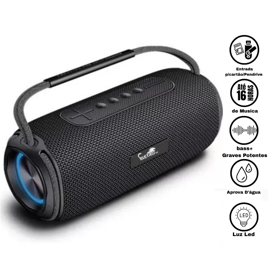 Caixa De Som Bluetooth 100w Graves Bass Bosst Potente Agold Super Alta Ipx6 Portatil Preto 110V/220V Alta
