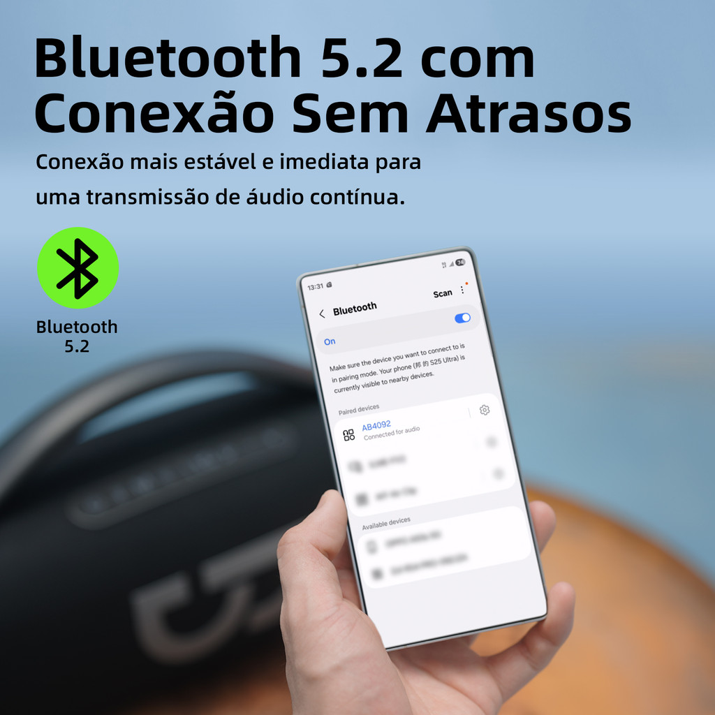 Som estéreo imersivo de 50 W: Experimente uma potência de áudio impressionante com 50 W de saída musical, dois alto-falantes de 20 W para frequências médias e baixas e dois alto-falantes de 10 W para frequências altas. Compatível com interconexão TWS para emparelhar sem fio dois alto-falantes e dobrar a potência sonora, transformando facilmente qualquer espaço em um ambiente imersivo para shows ou festas, perfeito para qualquer lugar ao ar livre. Iluminação RGB dinâmica para criar a atmosfera perfeita: Eleve o clima com uma iluminação RGB fascinante! Escolha entre três modos de cores com um toque curto, incluindo ciclos de cores entre 7 cores, um modo dinâmico de perseguição de 7 cores e um atraente efeito arco-íris para criar o ambiente perfeito. Desligue facilmente os efeitos de luz com um toque longo. Conectividade versátil para música sem fim: Além do emparelhamento Bluetooth perfeito com um toque para áudio estável e sem atrasos, desfrute de diversas opções de reprodução, incluindo cartão TF, entrada AUX, unidade USB e até mesmo suporte para instrumentos, garantindo que você sempre tenha acesso à música sem limitações, esteja você ao ar livre sem internet ou alternando entre o celular, o carro e o sistema de som de casa. Liberte o cantor que há em você: Crie momentos inesquecíveis de diversão com o microfone de karaokê. Mais do que uma simples caixa de som, é o seu palco! Equipado com um microfone de conexão instantânea e carregador de voz, ele transforma facilmente qualquer reunião em uma animada festa de karaokê. (Microfones adicionais podem ser adquiridos separadamente em nossa loja.) Bateria de longa duração para diversão sem parar: Projetada para atividades ao ar livre, esta caixa de som é alimentada por uma robusta bateria integrada de 6000mAh. Com apenas cerca de 3 horas de carregamento, ela oferece até 3 horas de reprodução para seus eventos e necessidades de entretenimento diário. Design elegante e ultraportátil: Com um design inspirado em uma bolsa, esta caixa de som para uso externo possui uma alça curvada confortável e uma alça de ombro removível para transporte flexível. O tamanho ideal cabe facilmente no porta-malas do carro, tornando-a a companheira perfeita para festas, acampamentos, dança ou qualquer passeio.