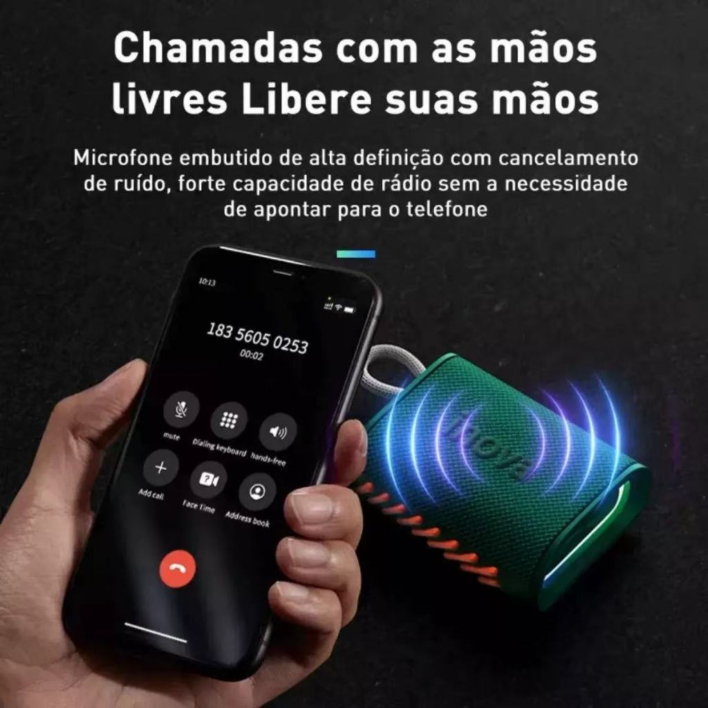 Caixa de Som Bluetooth Portátil com Bateria Esportiva - Reproduz por MicroSD, USB e Rádio FM