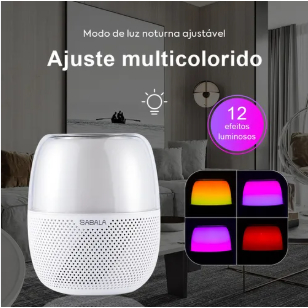 Caixa De Som Bluetooth Portatil Com Luz Led Sabala Dr-102 Cor: Preto SABALA é uma marca de caixas de som Bluetooth de alta qualidade. Nossa embaixadora no Brasil é a atriz Deborah Secco. Nossas caixas de som têm design arrojado e vanguardista, Alta qualidade de som e fidelidade, graves de alta potência E bateria de lítio que dura por mais de 10 horas. Hifi Clear Sound de cima não de baixo. Não fique cego por seu tamanho pequeno. Os agudos, médios e graves podem ser tocados com a caixa de som premium de faixa completa. Sabala DR-102 Caixa de Som: 20W RMS Caixa de som LED sem fio de qualidade soberba Som poderoso crie uma fantasia colorida e musical. Ótimo para se colocar na mesa para emitir cores para um clima romântico ou para a hora do café coloque na mesa de cabeceira no quarto use como luminária de mesa de dormir para as crianças caixa de som bluetooth para audiolivros caixa de som recarregável com rádio FM para acampamento ao ar livre. 12 Tipos de LED Luzes Coloridas: Modo de Luz Branca Quente com 12 níveis de brilho Modo de Luz hipnótica com Luz Vermelha para assistência ao sono Modo de Luz Dinâmica com mudança de cor RGB. Libere luz suave e confortável para facilitar e encantar. Múltiplos Modos de Conexão: Caixa de Som DR-102 Suporta conexão bluetooth wireless e inserção de cartão Micro SD / AUX. Multifuncional: Caixa de som DR-102. Reprodução de música por Bluetooth você pode usá-la para ouvir música e rádio. Quando Receber uma chamada telefônica você pode clicar curto para atender a chamada Além disso possui 12 ajustes de luzes diferentes que podem ser usados como luz noturna para ajudá-lo a adormecer rapidamente Conteúdo do pacote 1 DR-102 caixa de som Bluetooth 1 Cabo de carregamento 1 Manual de instruções