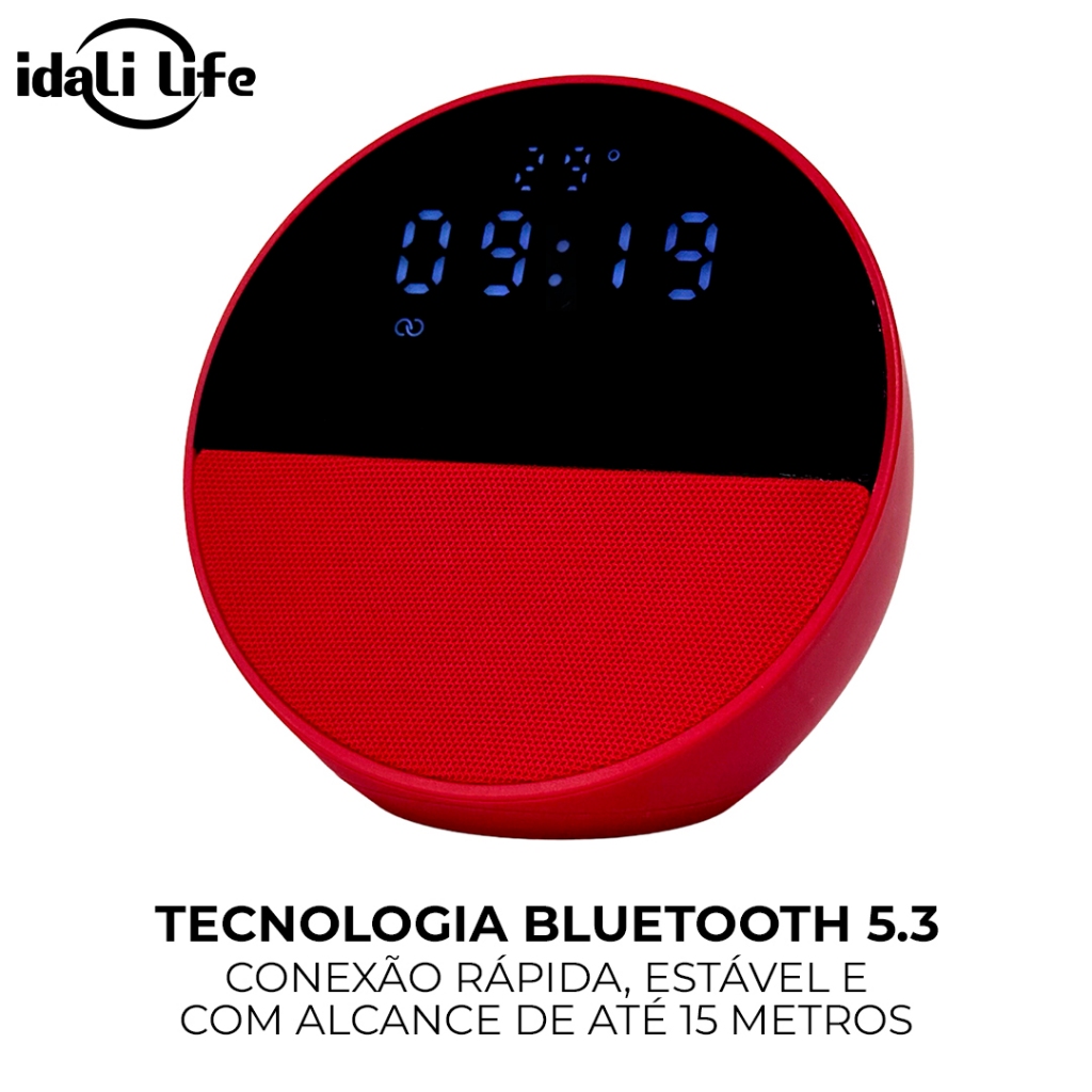 Caixa de Som Bluetooth Rádio Relógio IDALI LIFE 15W Despertador Digital LED FM USB Portátil