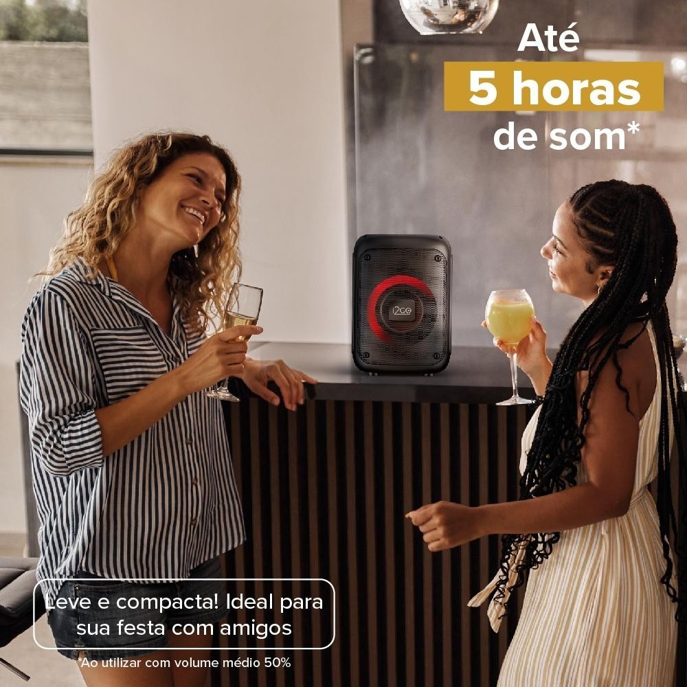 Eleve sua experiência musical com a Caixa de Som Bluetooth 40W, e mergulhe em um mundo de som de alta qualidade e potência inigualável. Desfrute de até 5 horas* De música ininterrupta com a Caixa de Som Bluetooth de 40W. Com a potência sonora certa para animar qualquer ambiente, esta caixa de som é o complemento perfeito para suas festas, encontros ou momentos de relaxamento. A tecnologia Bass+ oferece uma experiência sonora envolvente, com graves poderosos e dinâmicos que elevam sua música a outro nível. Com um som nítido e equilibrado, juntamente com um equalizador que se adapta a diversos estilos musicais, você terá a melhor experiência auditiva em qualquer situação. A conexão Bluetooth 5.0 permite uma conexão estável e de alta qualidade com seus dispositivos, para que você possa transmitir suas músicas favoritas sem complicações. Além disso, o alto-falante de 4 polegadas garante uma reprodução sonora clara e impactante, para que você sinta cada nota e batida com intensidade. Desfrute de até 5 horas* De música ininterrupta com a Caixa de Som Bluetooth de 40W. Com a potência sonora certa para animar qualquer ambiente, esta caixa de som é o complemento perfeito para suas festas, encontros ou momentos de relaxamento. Equalizador com 6 estilos músicais: Normal, Pop, Rock, Jazz, Clássico e Country. Várias formas de ouvir sua playlist favorita: Display Digital Controle multimidia Entrada Auxiliar 3,5mm Entrada para Microfone Conexão: Bluetooth® 5.0 Entrada para Pen Drive Entrada para Cartão MicroSD Especificações Técnicas: Potência: 40 W Driver: 104 mm Sensibilidade: 100 dB Impedância: 2 Ohms Conexão: Bluetooth® 5.0 Alcance da Conexão: ≪10 m Frequência: 100 Hz - 20 kHz Playtime: Até 5 horas* Bateria: 3600 mAh Tamanho: 250 x 180 x 150 mm Itens Inclusos: 1 Caixa de Som Bluetooth Ulta Square 200 i2GO 40W RMS - i2GO Plus *Garantia i2GO: Esse produto está garantido contra defeitos de fabricação por 1 ano.