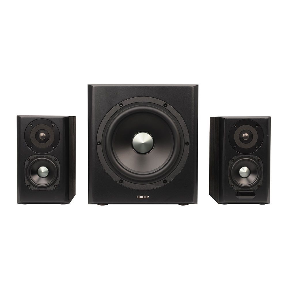 CAIXA DE SOM COM SUBWOOFER 150W RMS - EDIFIER S351DB PRETA Som nítido e design de luxo Com design clássico e luxuoso, a caixa de som com Subwoofer S351DB não chama a atenção apenas por seu visual, mas também por sua reprodução de som de alta qualidade. Os gabinetes do subwoofer e dos satélites são elaborados em madeira MDF, reduzindo a ressonância acústica e reduzir a distorção. Grave poderoso O subwoofer é equipado com um falante de 8 polegadas, elaborado com estrutura de alumínio fundido em sua construção, pode reproduzir graves com frequência de até 40Hz. O poderoso amplificador de graves gera potência de até 70 watts RMS. Amplificador Digital Classe-D O chipset DSP divide com precisão as frequências de agudos, médios e graves. Com três vias independentes, o amplificador digital Classe-D distribui os sinais de áudio de diferentes frequências e direciona para os drivers corretos, garantindo uma reprodução precisa. Agudos nítidos Os tweeters com cúpula de titânio de ¾" são ajustados com precisão para reprodução de altas frequências, reproduzindo agudos nítidos e brilhantes. Médios encorpados Os falantes de médios têm 3,5" e consistem em um diafragma de liga de alumínio e uma estrutura de alumínio fundido, reproduzindo médios encorpados e ricos. Conectividade Bluetooth para streaming de áudio contínuo O Bluetooth 5.0 apresenta forte resolução, transmissão estável, baixo consumo de energia, proporcionando uma experiência de áudio de alta qualidade. Controle Simples Com os botões de ajuste no painel lateral do satélite e controle remoto, opere facilmente A S351DB e desfrute de todas as funções. Conexões Múltiplas conexões estão disponíveis para ligação com diferentes fontes de áudio. Desfurte de bom som através das entradas PC/AUX (RCA) , OPT ou COAX e Bluetooth. As entradas OPT (Optical) e COAX (Coaxial) suportam entrada de sinais de áudio de alta qualidade com uma taxa de amostragem de 44,1kHz/48kHz. Dados Técnicos Potência: 150W RMS R/L (Tweeter): 15W+15W R/L (Médios): 25W+25W SubWoofer: 70W Sensibilidade de entrada: PC:R/L: 600 ± 50mV SW:270 ± 20mV AUX: R/L: 400 ± 50mV SW: 200 ± 20mV Óptico/Coaxial: R/L: 400 ± 50mFFS SW: 200 ± 20mFFs Bluetooth: R/L: 400 ± 50mFF SW: 200 ± 20mFFs Diâmetro dos drivers: Tweeter: 3/4 polegdas Médios: 3.5 polegdas Subwoofer: 8 polegdas Relação sinal / ruído: R/L: ≥80dB(A) SW: ≥85dB Resposta de frequência: 40Hz - 20KHz Versão Bluetooth: 5.0 aptX Distância máxima 10M Tecnologia: DSP / DRC Entradas: PC / AUX / Optical / Coaxial / Bluetooth Alimentação/Energia: Bivolt Medidas do produto unitario: -Subwoofer: (A) 30 x (L) 26,5 x (P) 32 cm -Satelites: (A) 22,5 x (L) 13 x (P) 16 cm Peso aproximado do produto sem embalagem: 17,4Kg