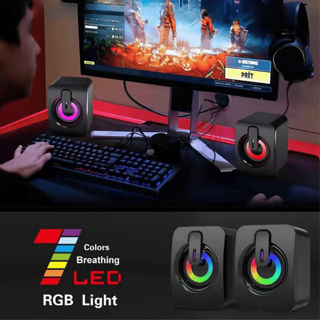 Caixa de Som Gamer RGB USB Potente para PC e Notebook Áudio Estéreo 2.0 com Controle de Volume
