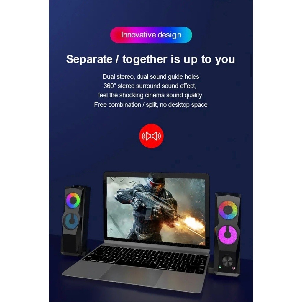 Caixa de Som Pc Gamer Led Caixinha Notebook Subwoofer USB