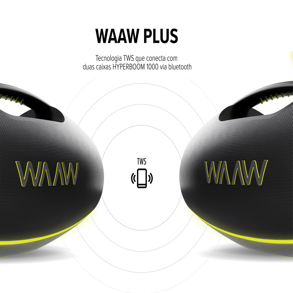 Caixa de Som Portátil 180W RMS com Bluetooth Hyperboom 1000 Até 12 Horas IPX7 Luz Led Waaw