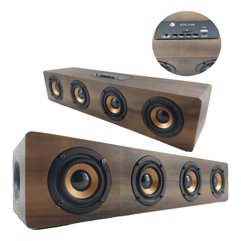 Caixa de Som Bluetooth Retro Vintage KTS1108 - Potente e Estilosa A KTS-1108 é uma caixa de som portátil com um design retrô envolvente, ideal para quem busca qualidade sonora e estilo. Com acabamento vintage em madeira, ela não é apenas uma caixa de som, mas também um elemento decorativo que se adapta perfeitamente a qualquer ambiente, desde o clássico até o moderno. Com 4 alto-falantes potentes, a KTS-1108 proporciona uma experiência de áudio excepcional, seja através de conexão Bluetooth, pendrive, cartão de memória ou até rádio FM. Perfeita para ouvir suas músicas favoritas com praticidade e elegância. Dimensões: 38cm x 9cm x 8cm Itens Inclusos: 1 Caixa de Som Bluetooth Retro KTS1108 1 Cabo USB para carregamento Especificações Técnicas: Potência de saída: 20W Resposta de frequência: 150Hz - 18KHz Relação sinal/ruído: 80dB Bateria: 2400mAh Tempo de reprodução: 2 horas a 80% de volume Tensão de carregamento: DC 5V Tempo de carregamento completo: 2 horas Versão Bluetooth: 5.0 Alcance sem fio: 10 metros Funções: Bluetooth Caixa de som sem fio Rádio FM Bateria recarregável Entrada USB para pendrive Slot para cartão Micro SD Envio Imediato