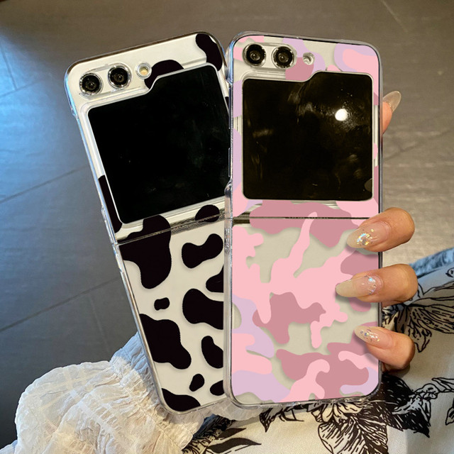 Caixa De Telefone Transparente Com Padrão De Vaca Para Samsung Galaxy Z Flip 6 5 4 3 5G Capa Dura PC Flip6 Flip5 Flip4