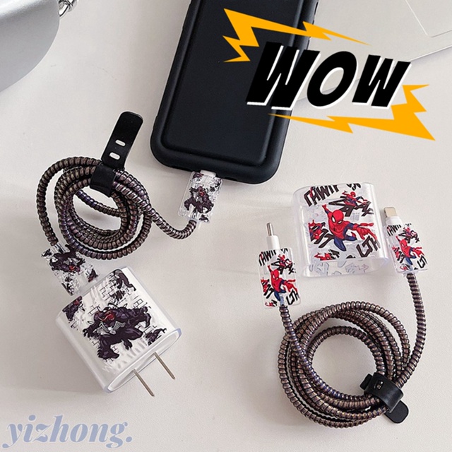 Caixa Do Carregador 5PCS/2PCS Conjunto Para iPhone 18W/20W Protetor De Cabeça De Carregamento Cool Spider-man Padrão De
