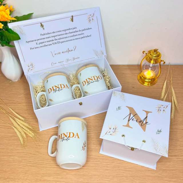 | Caixa e 2 canecas para convite de padrinhos/madrinha/batismo/casame... este produto | R$ 139,90 | — | 5.0/5 | 12 |