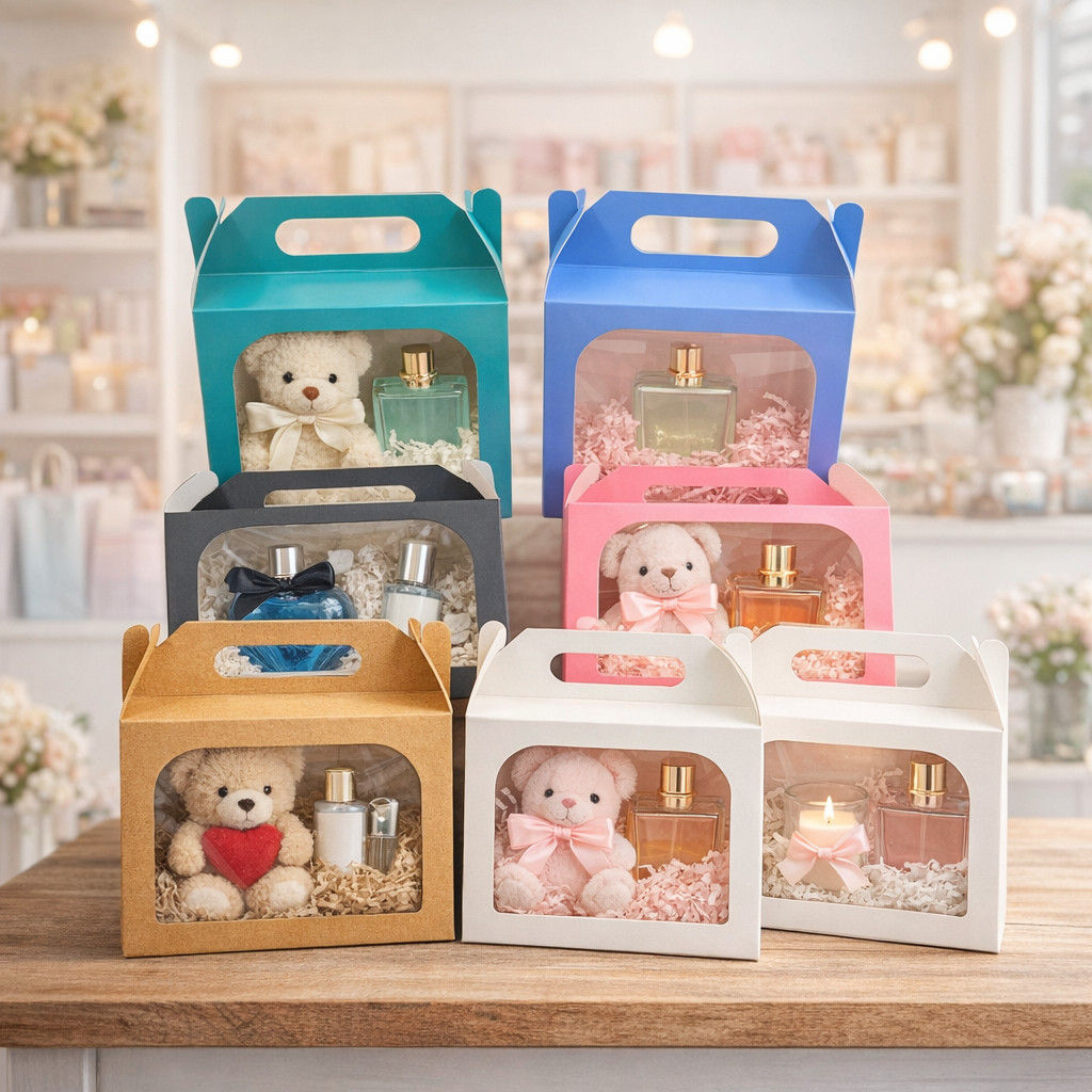 Caixa Embalagem Maleta 15x12x6 com Visor para Doces Sabonete Perfume Kit Presente. em 6 cores
