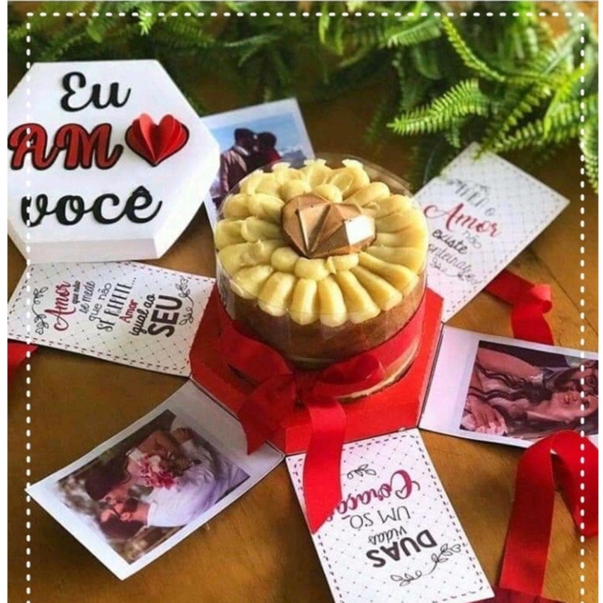 Caixa Explosão Dia dos Namorados para Mini Bolo Presente Romântica Decorativa - Eu Amo Você
