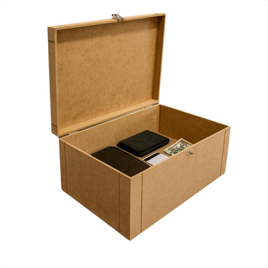 Caixa com Fecho Caixa em mdf de alta qualidade com dobradiças e fecho metálico com espaço para cadeado. Também usada para decoração. Altura: 16 cm Comprimento: 32 cm Largura: 22 cm Mdf Cru ACOMPANHA CADEADO!