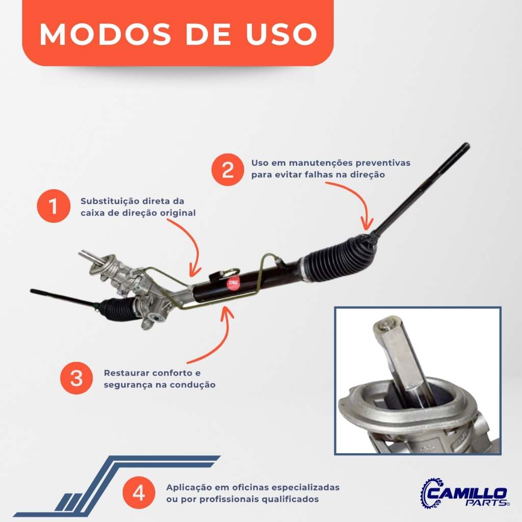 Bem vindo!! Você está em uma loja especializada em soluções automotivas seguras e confiáveis. Aqui, cada detalhe é pensado para cuidar do que move você: sua família, sua segurança e seus melhores momentos na estrada. Dirigibilidade Precisa e Confiável para Seu Volkswagen! Otimize sua experiência ao volante com a Caixa Setor de Direção Hidráulica TRW Original — uma das soluções mais tradicionais e seguras em sistemas de direção. 🛡️ Qualidade TRW Original 🎯 Leveza e precisão na direção 🔩 Durabilidade superior e encaixe perfeito 🔧 Pronta para instalação profissional ⚙️ Especificações Técnicas Marca: TRW Original Condição: Produto novo Tipo: Caixa de direção hidráulica Garantia: 6 meses Inclui: Axiais ❌ Não acompanha: Terminais de direção 🔁 Pinhão: Liso chavetado (sem estrias) 🏷️ Códigos de Referência 15486, 16900255S, 4580000026741, Q93-3411010, 7760000023, 24125, 7156426000, CX450255, 46559, 5U1422055G, 29427 🚘 Compatibilidade Garantida com Volkswagen 📌 Gol (G5, G6, G7, G8): 2008 a 2020 📌 Voyage (G5, G6, G7, G8): 2008 a 2020 📌 Saveiro (G5, G6, G7, G8): 2008 a 2020 📌 Fox: 2010 a 2017 📌 Spacefox: 2010 a 2017 📌 Crossfox: 2010 a 2016 🌟 Benefícios ao Adquirir Este Produto 🏁 Desempenho Aprimorado: Melhora a resposta da direção e elimina folgas e ruídos 🔧 Instalação Simplificada: Encaixe perfeito, agilizando o serviço na oficina 🛡️ Segurança TRW: Marca referência em qualidade automotiva 📄 Garantia de 6 Meses: Contra defeitos de fabricação (exceto mão de obra) 📦 Conteúdo da Embalagem 1x Caixa Setor de Direção Hidráulica TRW Original ✅ Acompanha axiais ❌ Não acompanha terminais de direção 📋 Recomendações e Regras de Garantia 👨🔧 Instalação Profissional Obrigatória Garantia válida somente com montagem por técnico qualificado 🧪 Análise Técnica para Garantia Produto passa por avaliação para validação de troca 📑 Documento de Garantia Obrigatório Preenchimento correto exigido para qualquer solicitação 🔒 Cobertura: Apenas do produto — mão de obra não inclusa 🛍️ Compre com Segurança! Adquira a sua Caixa de Direção TRW Original nas lojas oficiais: 🛒 Camillo Parts 🛒 Genuine Automotive 🛒 Edumac Parts 🚘 Confiança de quem tem mais de 40 anos de tradição em peças automotivas! 📞 Ficou com dúvidas? Fale com nosso atendimento ou utilize o campo de perguntas abaixo. 🎯 Garanta já o melhor para seu Volkswagen!