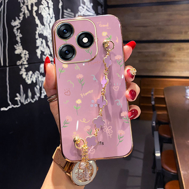 Caixa Infinix Smart 8 Pro Plus Hot 40i Tecno Spark Go 2024 20 20C Pop 8 Itel P55 BG7n Pequeno Padrão De Flor Com Bracelete De Quatro Folhas À Prova De Choque Para Telefone