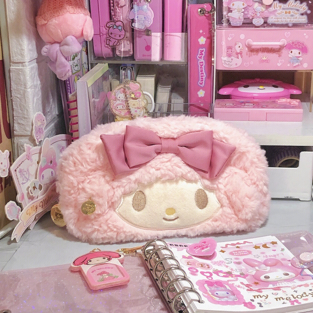 Caixa Kawaii de Pelúcia Grande Capacidade para Armazenamento de Cosméticos e Material Escolar