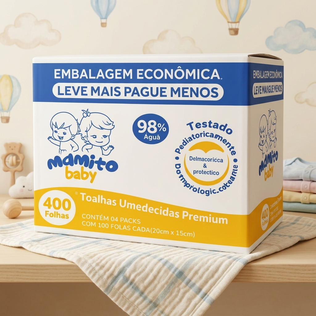 Caixa Lenço Umedecido Mamito Baby Premium 400 Folhas C/ Tampa
