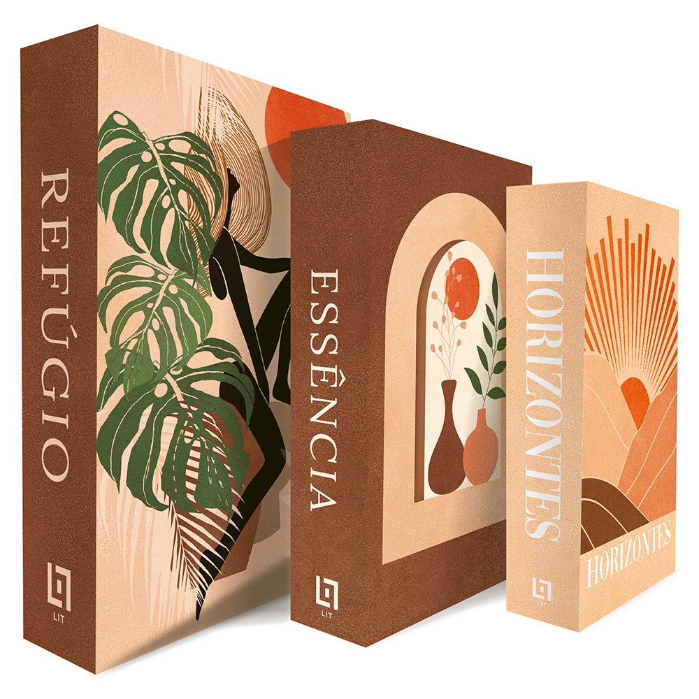 Caixa Livro Falso Decorativo Presente Fake Kit c/3 - Boho Terroso