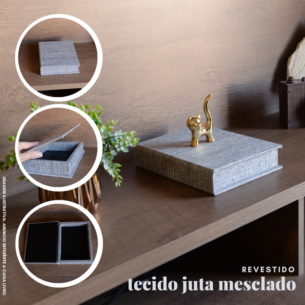 Caixa Livro P Fake MDF TECIDO JUTA Madeira Decorativa Porta Objeto Elegante