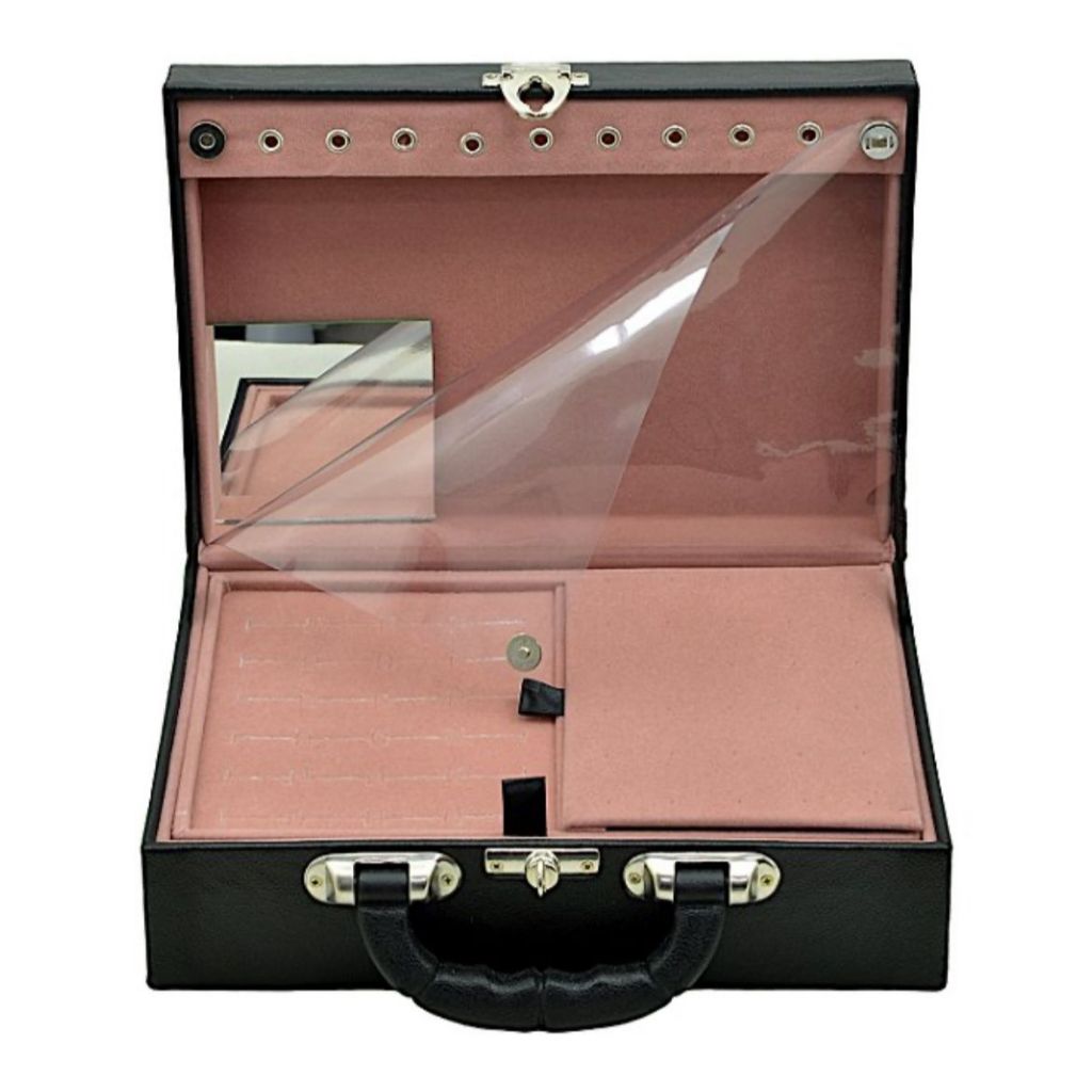Caixa Maleta Estojo Porta Joias Bijuterias Dupla Media com espelho - Preta Rosê