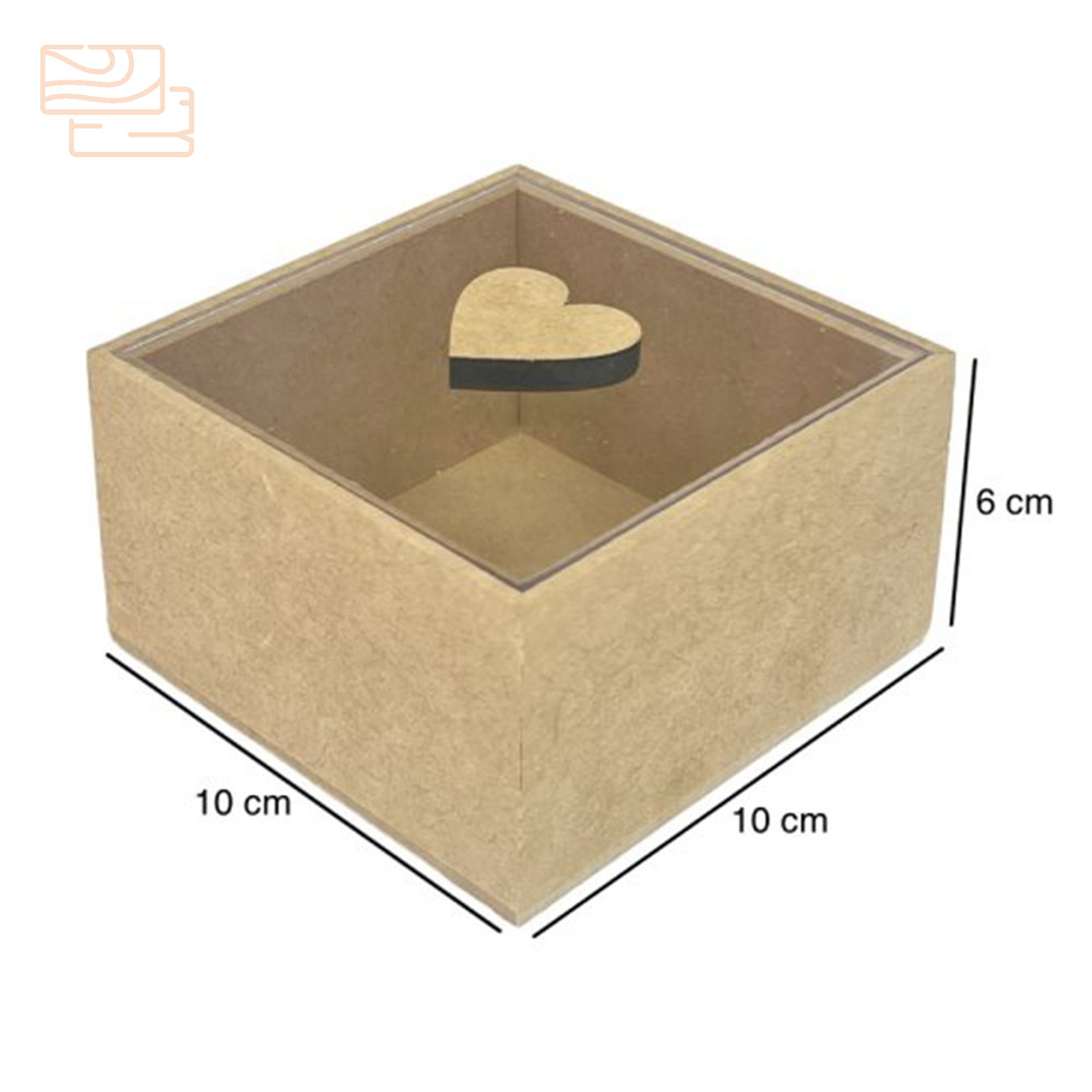 Tenha tranquilidade de comprar com quem esta disposto a te oferecer o melhor atendimento, caso tenha alguma problema após a compra, conte com nossa equipe para solucioná-lo! O MDF NA WEB tem a missão de garantir total satisfação ao cliente seja nos produtos ou no atendimento. Trazendo assim tranquilidade e confiança aos nossos clientes! Produto em madeira MDF crua, desenvolvida de forma artesanal, fabricado no MDF de 6mm e 2.8mm Aplique coração vai descolado. Essa caixa de MDF com tampa de acrílico e puxador em formato de coração é uma peça encantadora e versátil. Com dimensões de 10x10x6 centímetros, oferece um espaço compacto para armazenar diversos objetos, desde joias e bijuterias até pequenos acessórios de escritório. Ideal para presentear. A combinação de materiais, com o MDF proporcionando uma base sólida e o acrílico conferindo um toque de transparência elegante, adiciona um charme especial a esta caixa. Além disso, a presença do puxador em formato de coração adiciona um elemento decorativo romântico. A vantagem de poder utilizar tinta acrílica à base de água oferece a oportunidade de personalizar a caixa de acordo com preferências individuais. Isso permite que seja adaptada para combinar com diferentes estilos de decoração. MEDIDAS: Altura:6cm Largura:10cm Comprimento:10cm Sempre à disposição para tirar suas duvidas. Aguardamos seu pedido! Veja as nossas variações!
