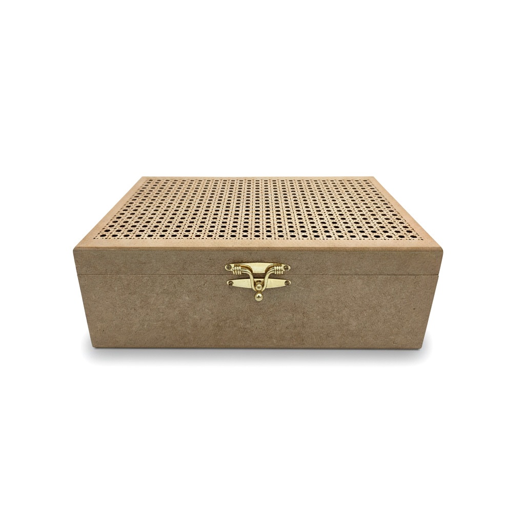Caixa MDF Palha 30x20x10cm Com Fecho E Dobradiças Ideal Para Presente E Personalização