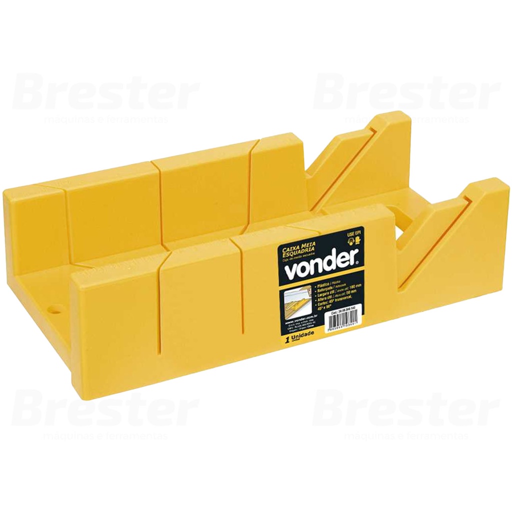 Olá, Bem vindo a Distribuidora Brester. Trabalhamos com uma grande variedade de ferramentas elétricas e manuais, descartáveis, eletroeletrônicos, artigos para casa, artigos de petshop e outros. Aqui você encontrará Produtos Originais, Nota Fiscal, Pronta Entrega e Envio Imediato! * Características do produto * Caixa Meia Esquadria Gabarito Corta Em 45 E 90 Graus Vonder A Caixa Meia Esquadria da Vonder é a solução ideal para todos os seus projetos de carpintaria. Ela permite cortes precisos em ângulos de 45° e 90°, tornando muito mais fácil e rápido realizar seus trabalhos. Produzida em plástico ABS resistente, a Caixa Meia Esquadria da Vonder garante maior durabilidade e segurança para o seu trabalho. Aproveite e realize seus projetos com maior rapidez e eficiência. Experimente a Caixa Meia Esquadria da Vonder, para resultados precisos e duráveis! Características Técnicas: > Material: Plástico; > Comprimento da caixa de meia-esquadria: 300 mm; > Largura da caixa de meia-esquadria: 140 mm; > Largura útil da caixa de meia-esquadria: 100 mm; > Altura da caixa de meia-esquadria: 80 mm; > Altura útil da caixa de meia-esquadria: 50 mm; > Massa aproximada (peso): 0,343 kg; - Marca: Vonder - Garantia: 90 dias contra defeitos de fabricação Vantagens: - Nota fiscal para Pessoa Física e Pessoa Jurídica. - Produto novo, com garantia de fábrica. - Produto a pronta entrega. - Envio em até 24hs em dias úteis após confirmação do pagamento. Obrigado por escolher a Brester Máquinas.