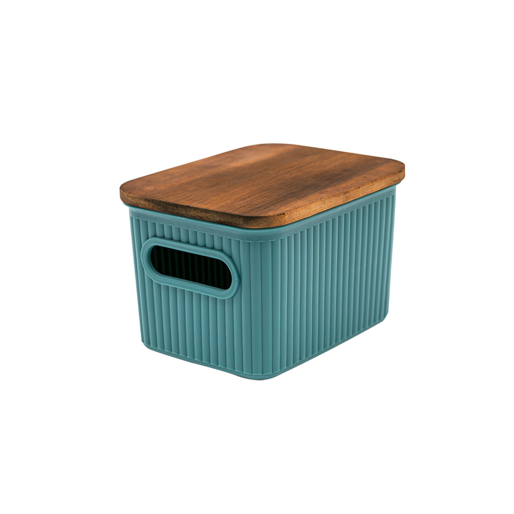 caixa organizadora 1,5L de plástico com tampa de madeira acácia - Oikos